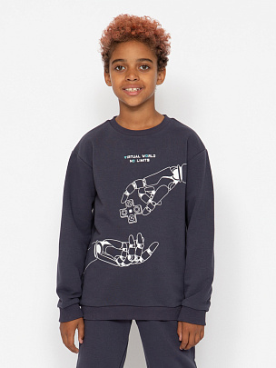 Джемпер для мальчика, из пряжи с добавлением шерсти. Перед декорирован жаккардовым узором.