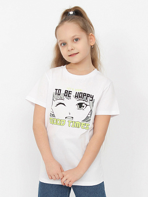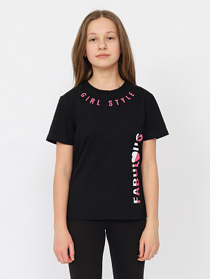 Футболка для девочки с трендовым колледж-принтом, с блестящим эффектом и контрастными бейками по горловине и рукавам. Модель сделана из 100%-хлопкового трикотажа. Материал приятно прилегает к телу, не сковывает движения и позволяет коже дышать.