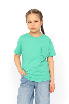 Футболка для девочки с трендовым колледж-принтом, с блестящим эффектом и контрастными бейками по горловине и рукавам. Модель сделана из 100%-хлопкового трикотажа. Материал приятно прилегает к телу, не сковывает движения и позволяет коже дышать.