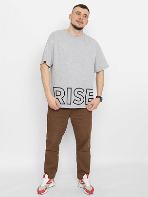 Футболка прямого силуэта длиной до бедер. Короткий рукав. Круглая горловина обработана узкой притачной обтачкой из рибаны с эластаном. Полочка декорирована принтом и текстильной нашивкой "ясное будущее естественное и аутентичное".
