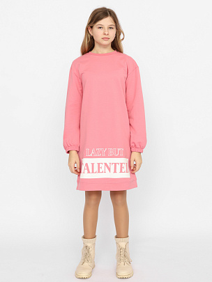 Платье для девочки из футера. Изделие с длинными рукавами, отложным съемным воротником из кружева. Отрезное чуть ниже линии талии. Сзади застегивается на пуговку. Декорировано бантиком.