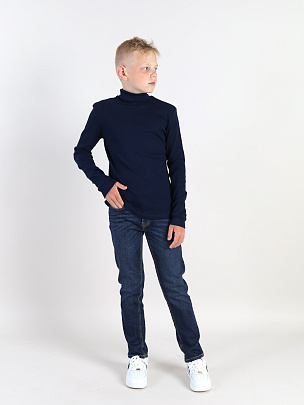 Водолазка с длинным рукавом и высоким воротником-стойка. Манжеты и воротник выполнены из полотна с добавлением эластана.