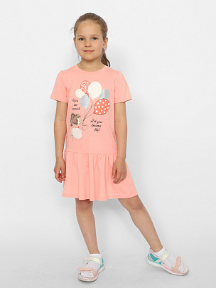 Нарядное платье свободного силуэта, с короткими рукавами. Нижний слой платья из хлопковой кулирки. Верхний слой платья из сетки с блестящими кружочками "конфетти". Сзади застежка на пуговицы.