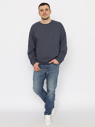 Джемпер мужской прямого силуэта с притачным поясом, рукава с манжетами, со спущенным плечом. Круглая горловина обработана узкой притачной обтачкой из рибаны с эластаном. Полочка декорирована принтом.