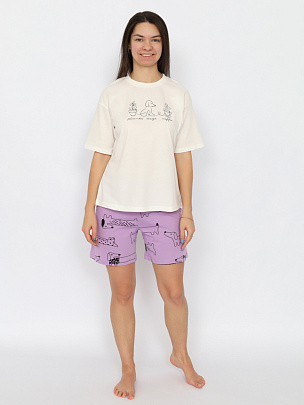 Футболка с коротким рукавом. Горловина круглая, обработана узким воротником из полотна с эластаном. Перед оформлен ярким принтом.