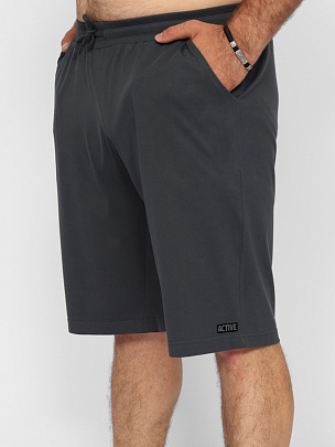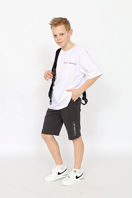 Шорты для мальчика с боковыми карманами и притачным поясом из основного полотна. В пояс вставлена резинка и функциональный шнур.
