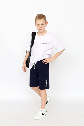 Футболка oversize со спущенным плечом, с коротким рукавом. Горловина круглая, обработана притачной бейкой из рибаны с лакрой. Плечевые швы смещены на перед и отстрочены. Перед оформлен принтом.