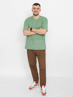 Футболка с коротким рукавом. Горловина обработана обтачкой из рибаны с лайкрой. По ростку проложен усилитель из экстрафорной ленты. На полочке выполнена шелкография мягкими красками.