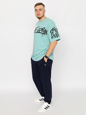Брюки мужские, на манжете. Отрезной пояс и манжеты выполнены из кашкорсе. Притачной пояс с кулиской, кругловязанный шнур с застроченными концами вставлен в петли. Карманы наклонные. По шву притачивания пояса проложена декоративная строчка.